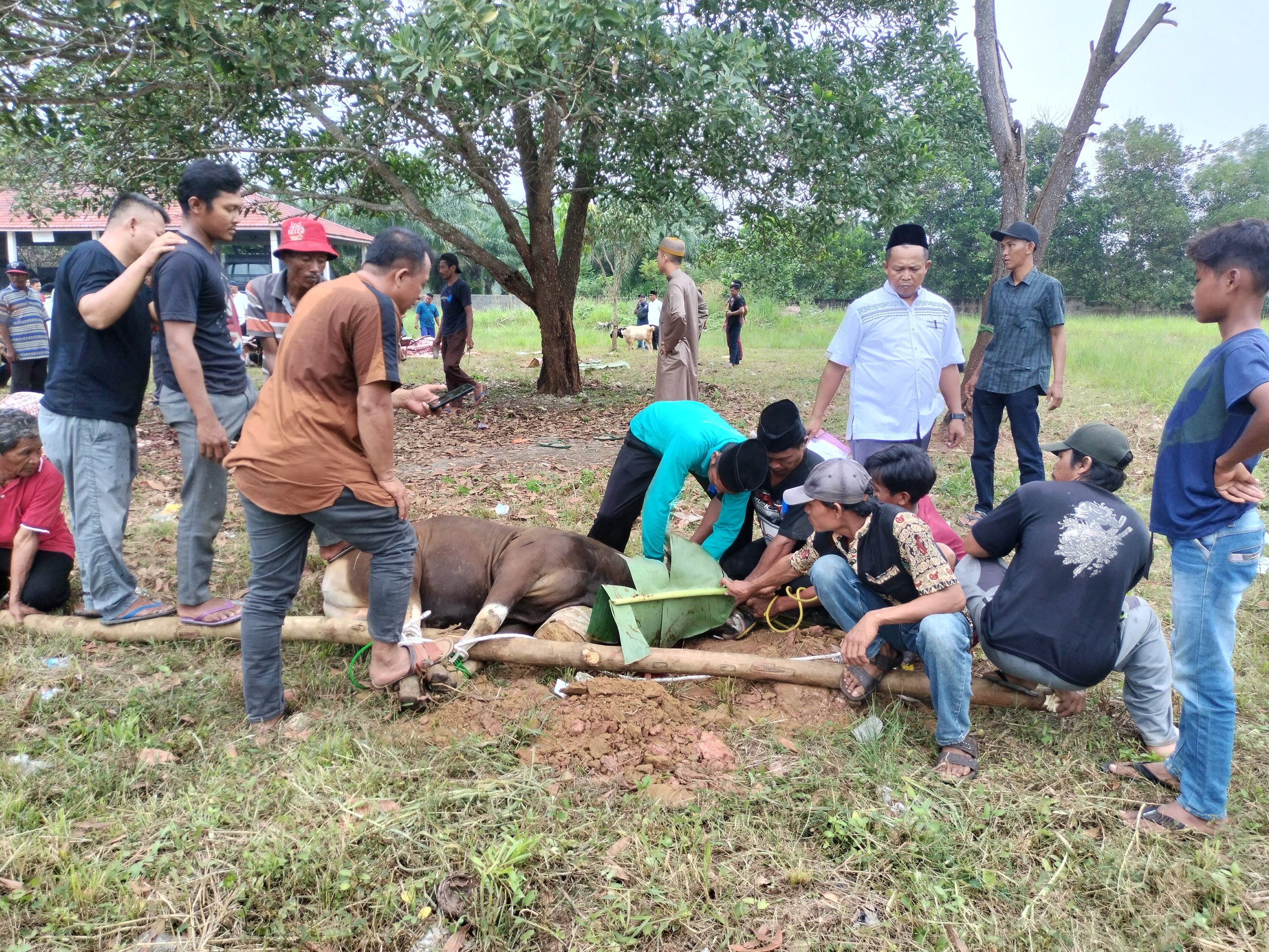 Kemudian dilanjutkan dengan melaksanakan penyembelihan hewan qurban, sebanyak 6 Ekor Sapi dan 2 Ekor Kambing. Senin (17/06/24)
